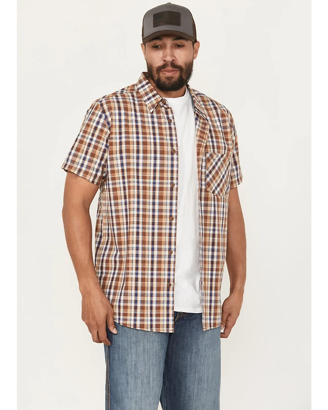 Brothers and Sons Men's Plaid Print Performance Short Sleeve Button Down Western Shirt