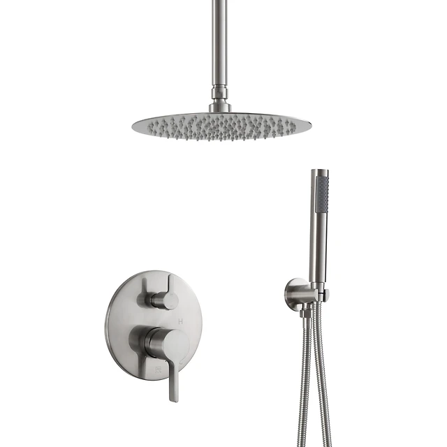 Brush Nickel 10 Inch Round Bathroom Shower Combo Set