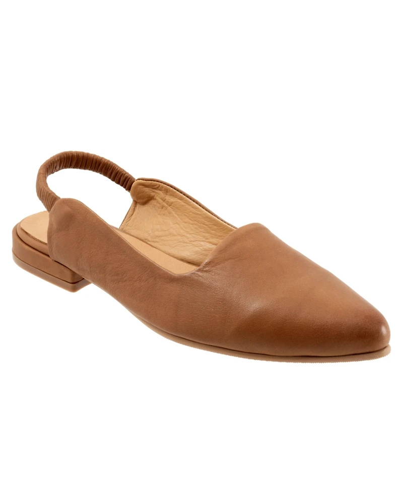 The Indie pointed toe flat has an elasticized back strap and full leather lining.