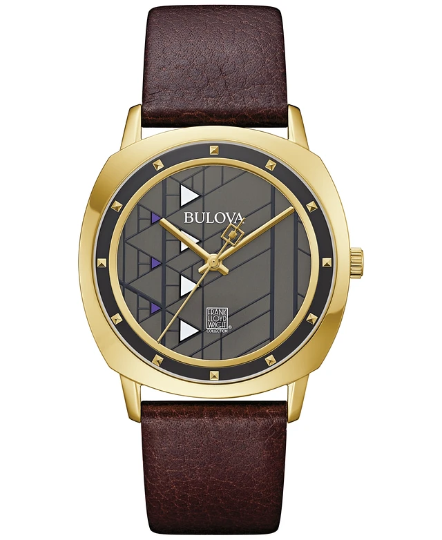 Bulova Men's Frank Lloyd Wright Hollyhock House Brown Leather Strap Watch 39mm