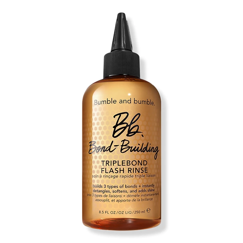 BND-BLDNG TRPLBND FLSH RNS 8.5Z 8.5OZ. Benefits: Builds bonds + fortifies. Adds shine. Softens + smoothes. Hydrates. Instantly builds the three essential bond types, increases shine by 2x (vs. unwashed hair), and detangles and softens.. Research Results: Instant results. Builds the 3 essential bond types. 2x shine*. *vs. unwashed hair. Key Ingredients: Honey Bond-Building TripleBond Complex builds three types of bonds in hair instantly.. Micellar Conditioning Technology lifts away impurities, conditions, and adds shine..