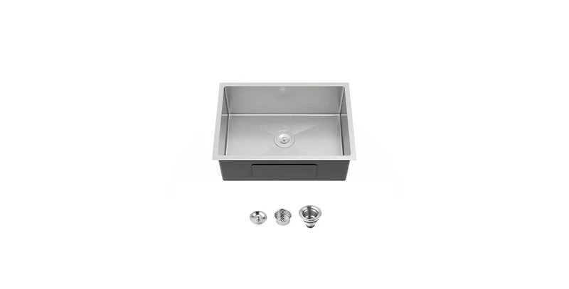 This undermount kitchen sink is crafted from durable stainless steel and finished in an elegant brushed nano gray tone, offering a modern and sophisticated look that complements a wide range of kitchen interiors. Measuring 27 x 19 x 10 inches, it provides a deep and spacious basin that comfortably accommodates large cookware while helping to minimize splashing. Designed for undermount installation, the rectangular sink creates a seamless transition from countertop to basin, making cleaning effortless and enhancing the overall aesthetic. The grid-style drain promotes efficient water flow while protecting the sink surface from scratches, and the sturdy construction ensures long-lasting performance with a net weight of 7.1 kg. The brushed finish resists fingerprints and water spots, maintaining a clean appearance with minimal effort. Easy to care for, the sink only requires wiping with a dry cloth to retain its refined look. With no batteries required and a clean, minimalist pattern, this undermount sink is a practical yet stylish choice for contemporary kitchens seeking both functionality and visual appeal.