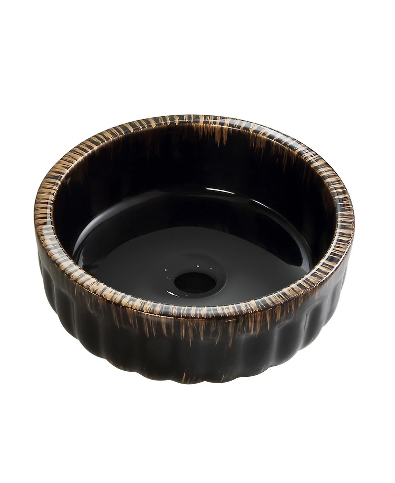 Premium Ceramic Vessel SinkCrafted from high-quality ceramic, this white sink with an elegant gold rim combines durability with a refined appearance. Its robust material resists stains, scratches, and chipping, ensuring long-lasting performance. The dimensions measure L14.97 " × W14.97 " × H5.52 ". Note: Faucet and drain are not included.
