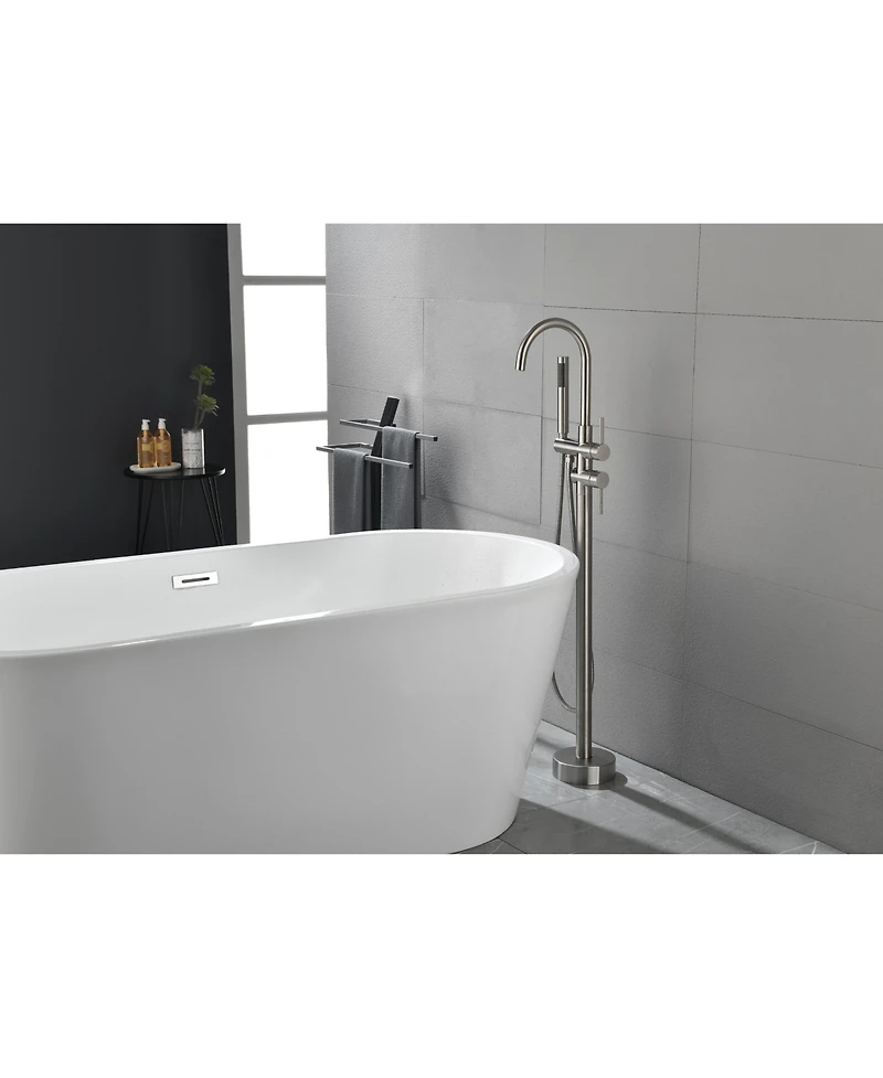 This freestanding tub filler combines modern design and reliable performance for your bathroom. It features a 360degree(s) swivel spout and a handheld shower, making it easy to rinse the tub or clean after bathing.With a convenient control knob, you can smoothly switch between the tub spout and handheld shower to suit your daily needs. Made of high-quality material, this faucet is rust-resistant and corrosion-resistant, ensuring long-lasting durability.The high-quality aerator delivers a soft, steady water flow with rich bubbles, effectively preventing splashing and reducing water impact while providing a comfortable and water-saving experience.