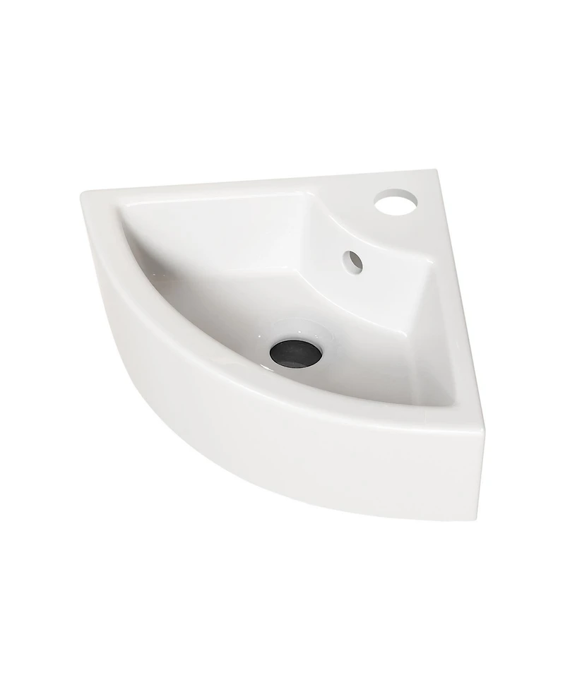 Specifically shaped to fit snugly into any bathroom corner, this wall-mounted sink maximizes unused space—perfect for small bathrooms, powder rooms, laundry areas, or tight layouts where every inch counts.