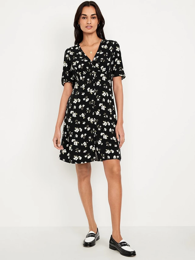 Fit & Flare Crepe Lace-Trim Mini Dress