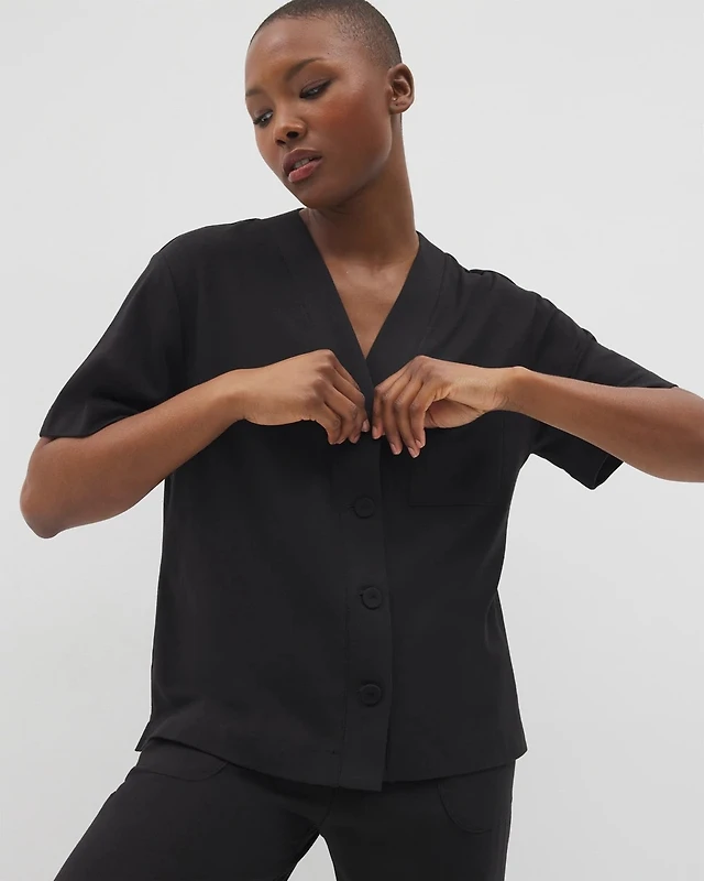 Short-Sleeve Button-Front Pajama Top
