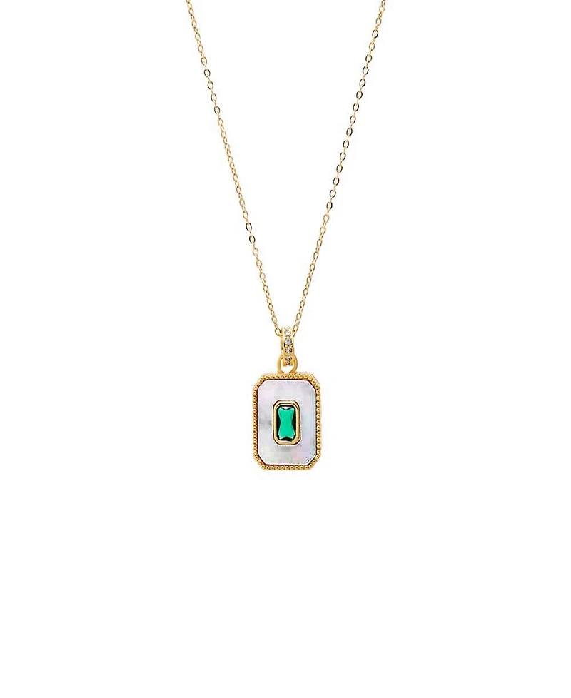 by Adina Eden Green Cubic Zirconia Mother Of Pearl Dog Tag Necklace