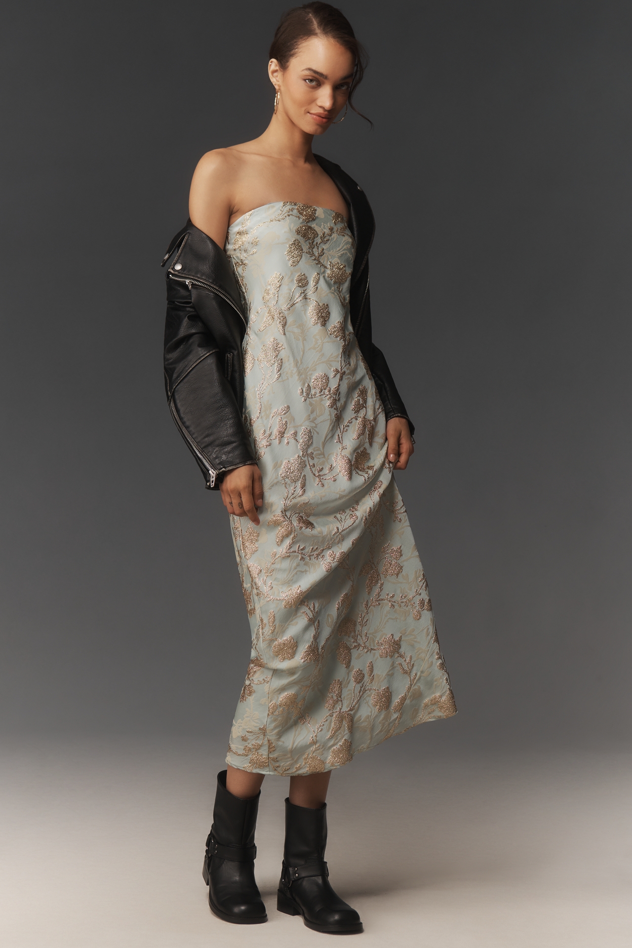 By Anthropologie Brocade Strapless Maxi Dress