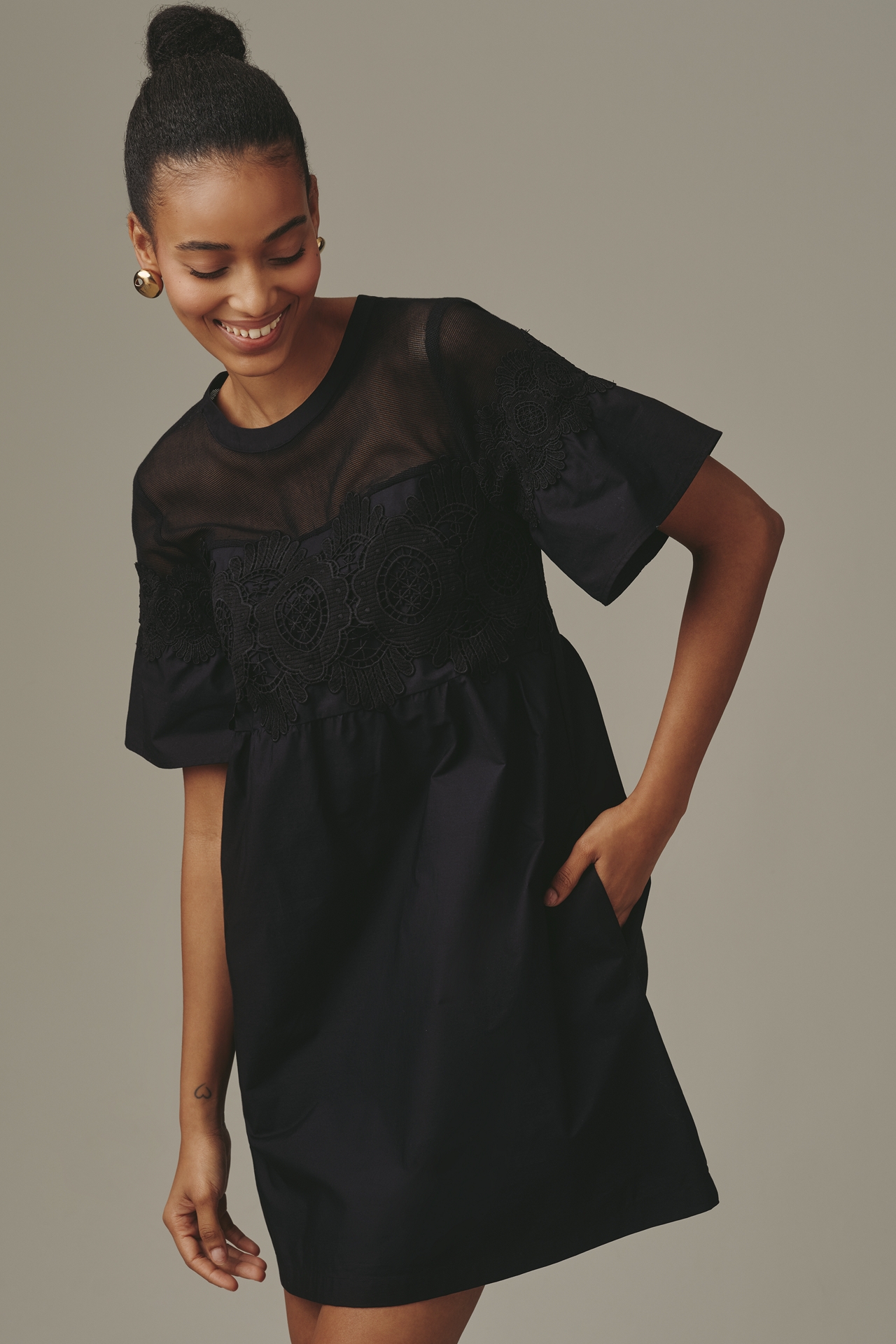 By Anthropologie Cotton Poplin Swing Mini Dress