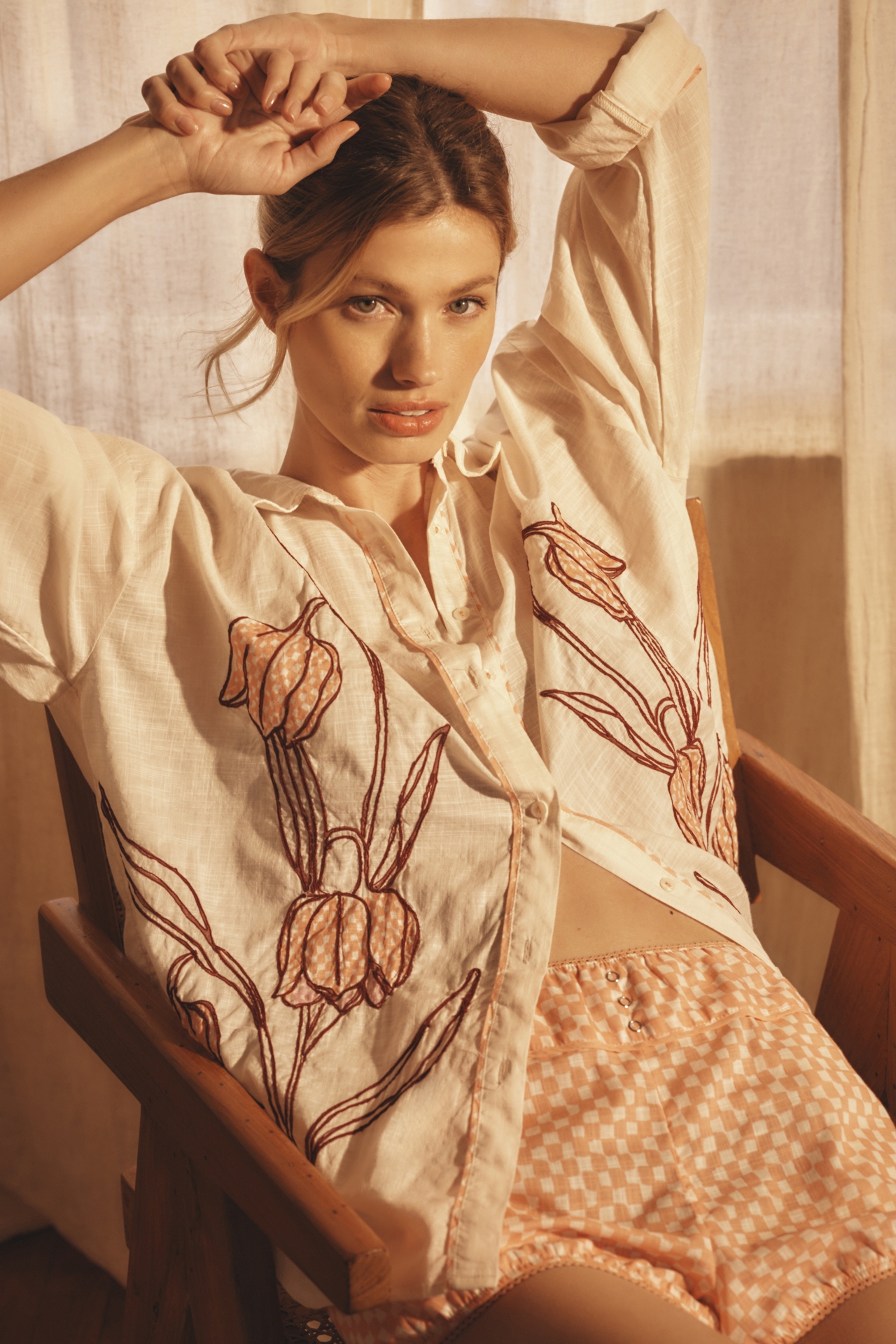 By Anthropologie Embroidered Boxy Buttondown Shirt