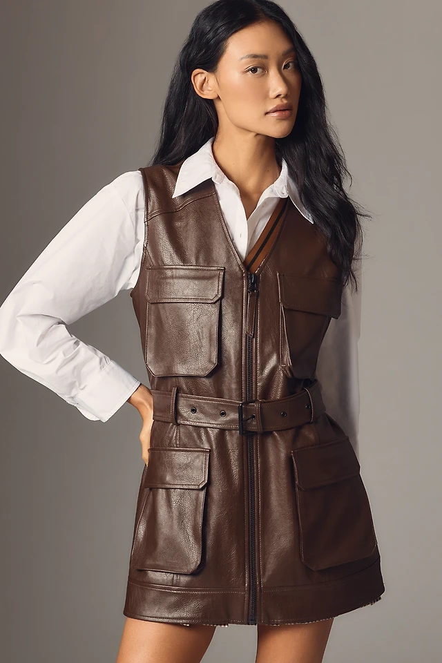 By Anthropologie Cinched-Waist Faux Leather Jacket