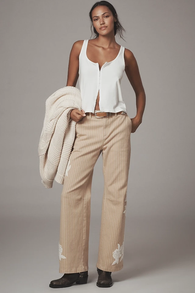 By Anthropologie Lace Petticoat Crop Wide-Leg Pants