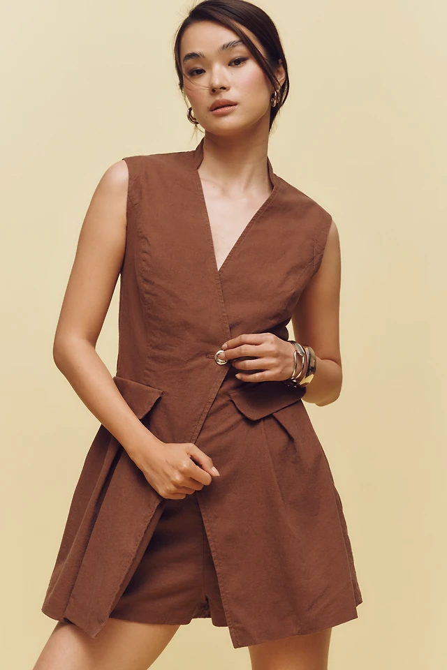 By Anthropologie Linen Blend Sleeveless Vest Romper