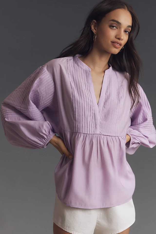 By Anthropologie Long-Sleeve Pintuck Blouse