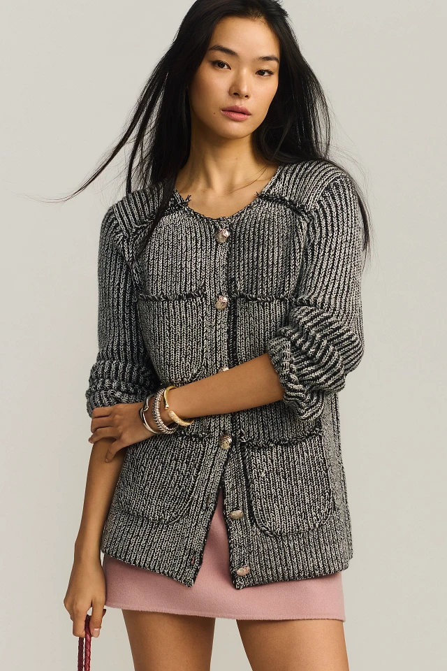 By Anthropologie Patch-Pocket Marled Cardigan Sweater