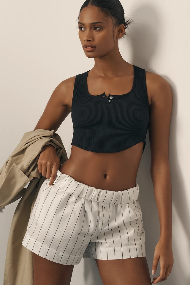 By Anthropologie Cotton Sleeveless Waisted Crop Top