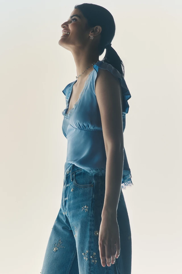 By Anthropologie Silky Lace-Trim Tank