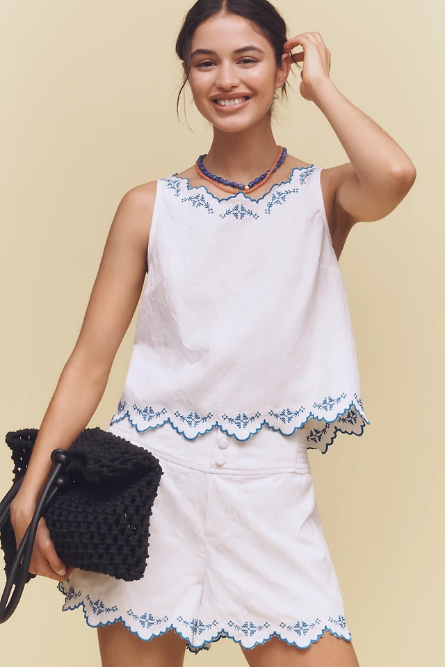 By Anthropologie Sleeveless 3D Floral Appliqué Top