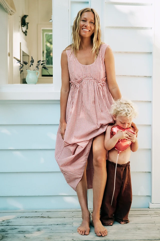 By Anthropologie Sleeveless Gingham Midi Dress