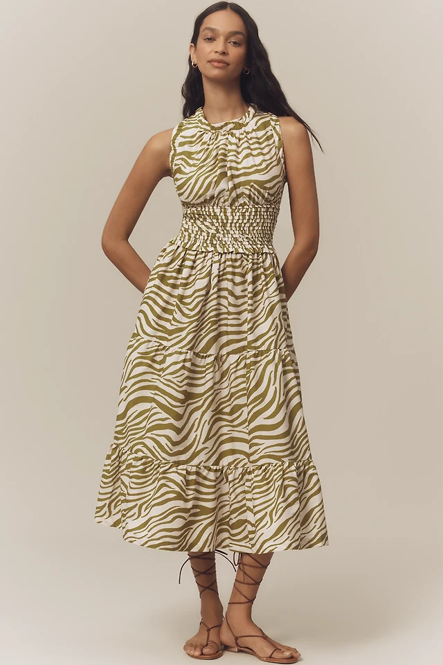 By Anthropologie Sleeveless Poplin Smocked Midi Dress