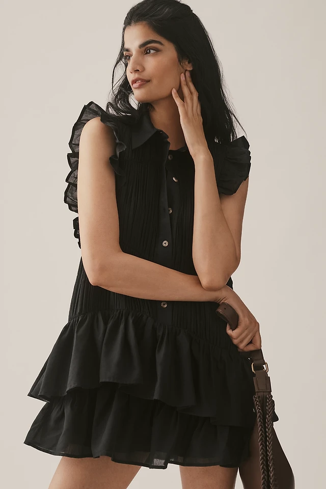 By Anthropologie Sleeveless Ruffle Mini Shirt Dress