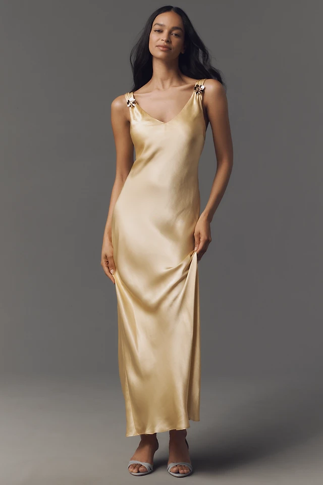 By Anthropologie Sleeveless V-Neck Midi Slip Dress