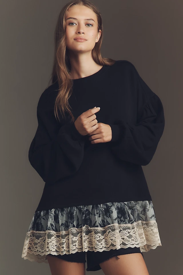 By Anthropologie Tulle-Hem Pullover Sweatshirt