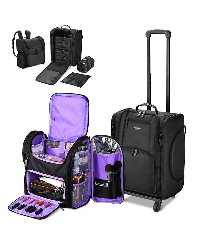 Byootique Rolling Makeup Train Case & Backpack Kit w/ 7 Toiletry Bags Artist