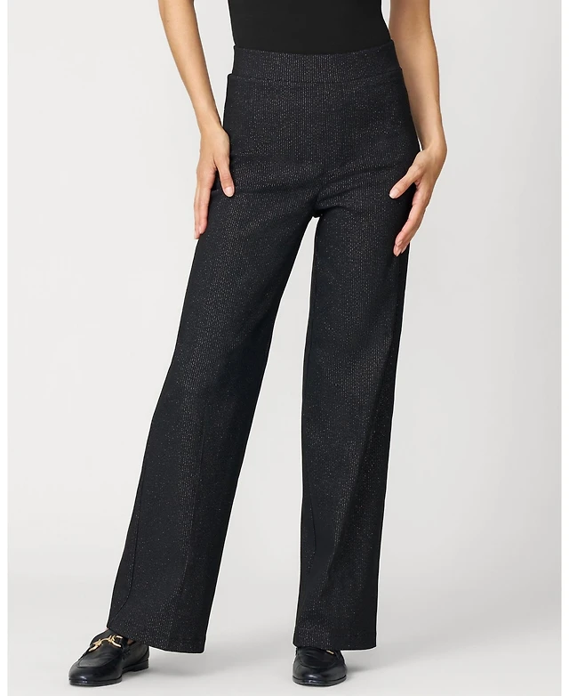 Cable & Gauge Women's Metallic Stripe Wide Leg Pull On Pant
