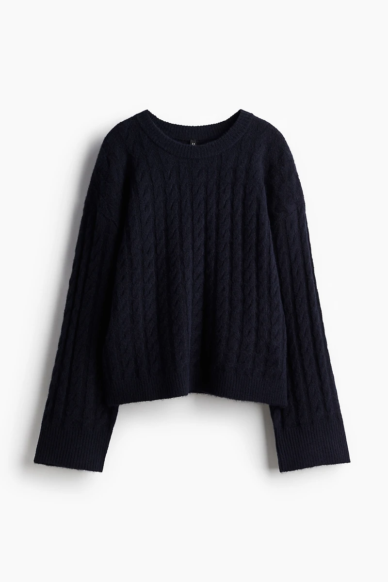 Loose-fit sweater in a soft cable knit. Round neckline, dropped shoulders, and long sleeves. Ribbing at neckline, cuffs, and hem.