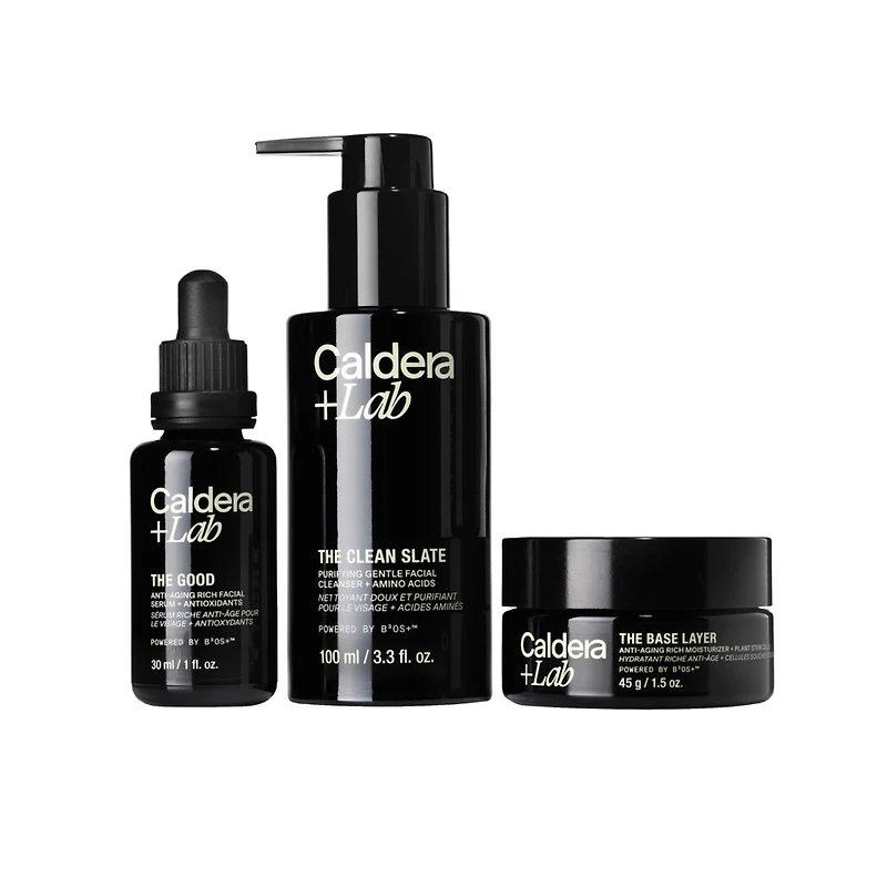 The Regimen Rich. Benefits: Clinically proven 3-step skincare system designed to deeply hydrate and renew dry skin, especially in colder climates.. Visibly reduces lines and wrinkles. Smooths and evens skin tone. Strengthens the skin barrier and improves elasticity. Provides lasting moisture and protection. Ideal for dry skin and nighttime repair. Dermatologist tested. No animal testing. No harsh chemicals. Paraben free. Silicone free. Key Ingredients: Fireweed A potent antioxidant and anti-inflammatory botanical that supports skin resilience. Amino Acids Hydrate and strengthen the skin barrier. Probiotic Ferments Balance the skins microbiome for a healthy, calm complexion. Plant Stem Cells Help combat visible signs of aging and protect against free-radical damage. Vegan Squalane Plant-based emollient that mimics natural lipids to smooth and moisturize skin. Formulated across three synergistic products The Clean Slate cleanser, The Good serum, and The Base Layer moisturizer for total hydration and restoration. Includes: The Good - Anti-Aging Rich Serum. The Base Layer - Anti-Aging Rich Moisturizer. The Clean Slate - Balancing Cleanser.
