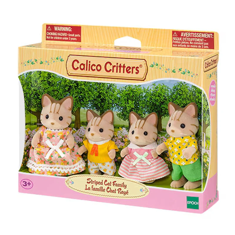 The Striped Cat family have a cute, stripy pattern. This set contains the father, mother, boy and girl. The fabric clothing can be removed to change their outfits. Ages 3+