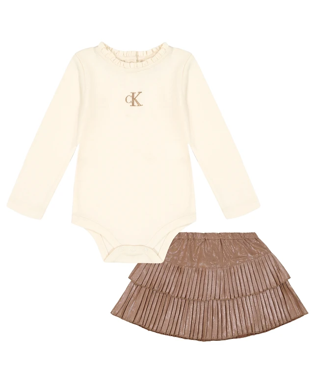 Calvin Klein Baby Girls 2-Piece Ruffle Collar Bodysuit and Skirt Set