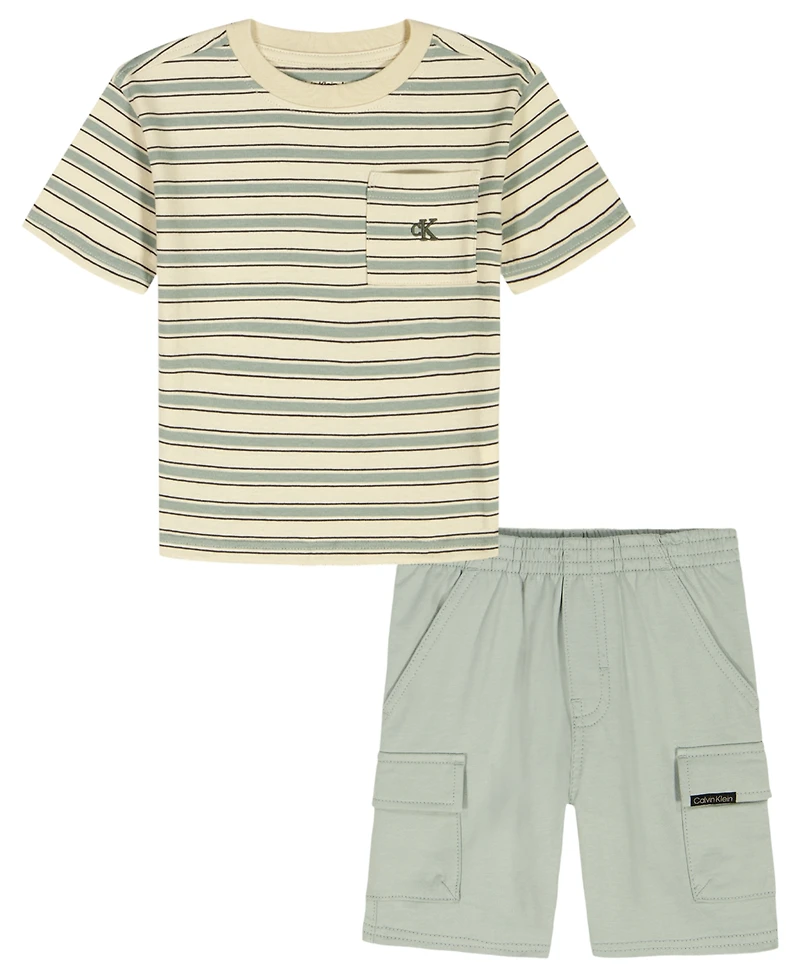Calvin Klein Boys' 2T-7 Relaxed Multi-Stripe T-Shirt and Cargo Shorts, 2-Piece Set