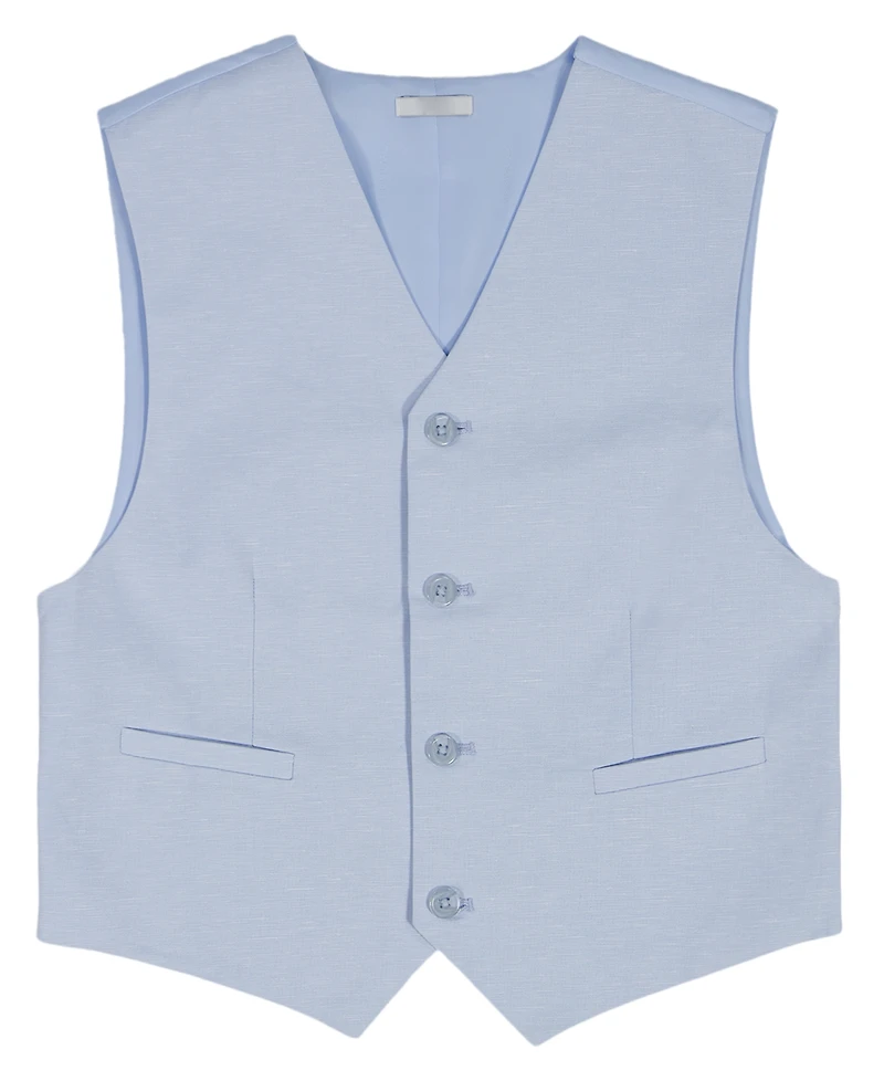 Elevate your boy's looks with effortless sophistication in this tri-blend suit vest from Calvin Klein. Its linen-look fabric offers breathable comfort while maintaining a sharp, structured silhouette for events and gatherings.