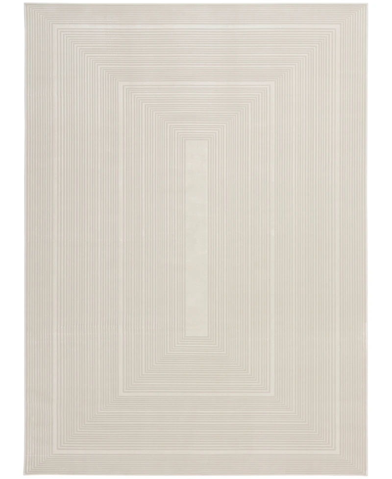 Refresh your space with the chic style of this rug from the Calvin Klein Irradiant Collection. The design features concentric rectangles in ivory with raised accents and a sheen that adds visual depth. Machine-made from softly textured polyester yarns.