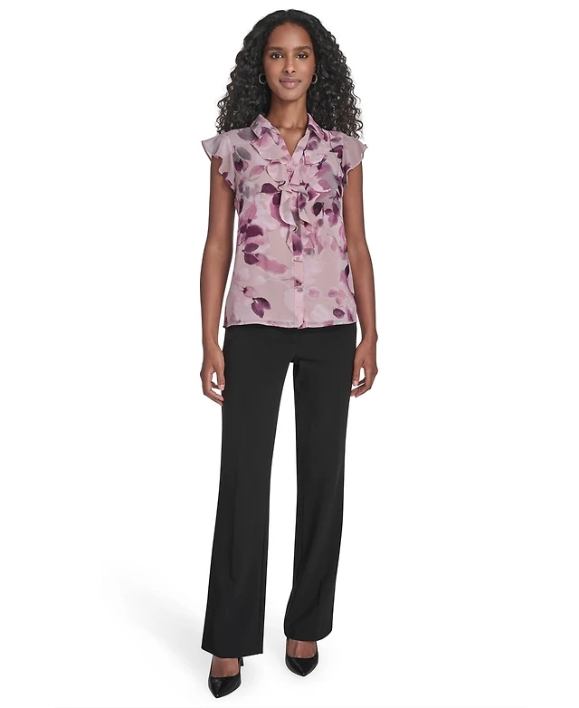 Calvin Klein Women's Printed Ruffle Front Top