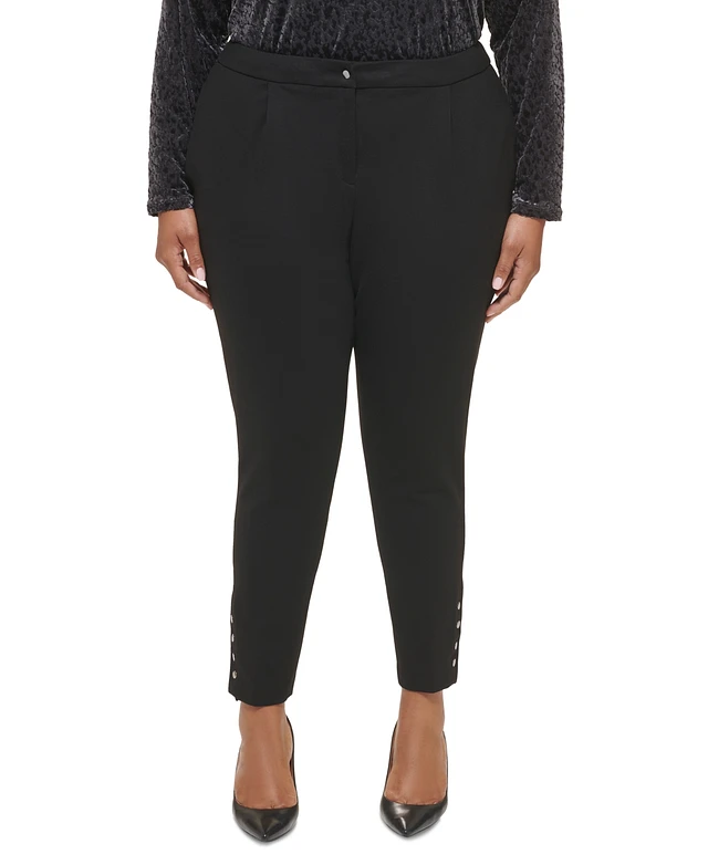 Calvin Klein Plus Size Ponte Pleated Slim-Leg Pants