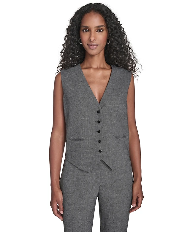 Calvin Klein Womens Double Breasted Jacket Modern Fit Pants Collarless Sleeveless Vest