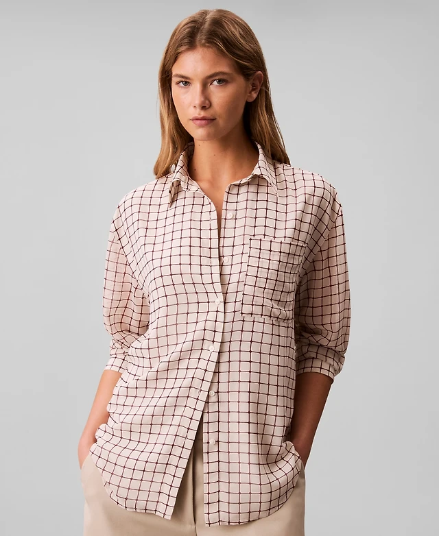 Calvin Klein Women's Printed Classic Button-Front Shirt