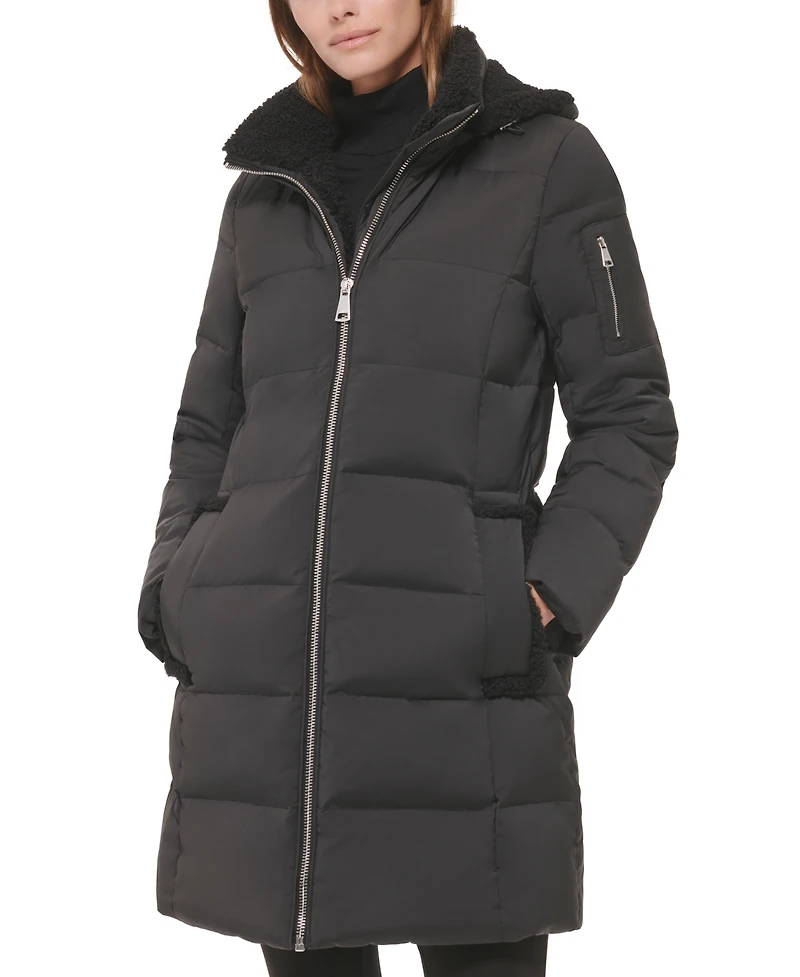 Calvin Klein Women's Sherpa-Trimmed Hooded Down Puffer Coat