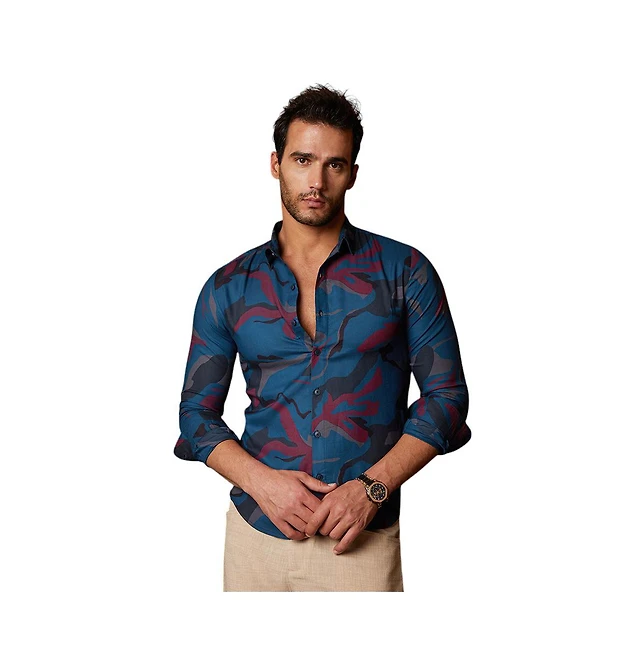 Campus Sutra Men's Blue Foliage Strokes Shirt