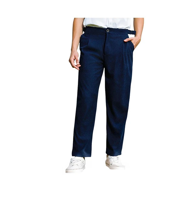 Campus Sutra Men's Navy Blue Tailored Waffle Trousers