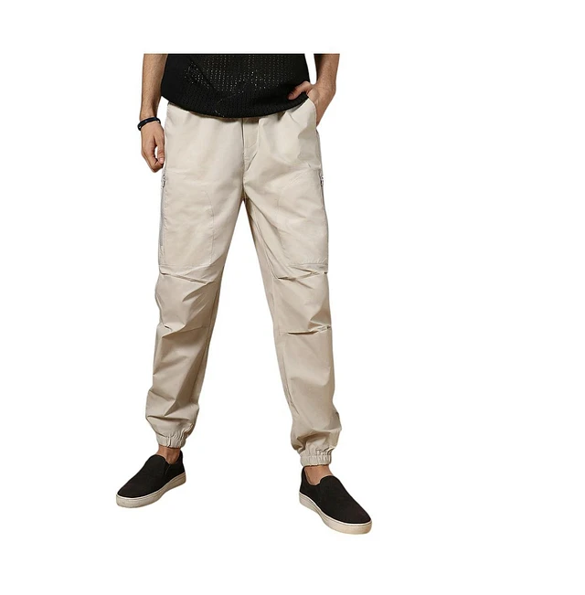 Campus Sutra Men's Saltbox Beige Parachute Utility Trousers