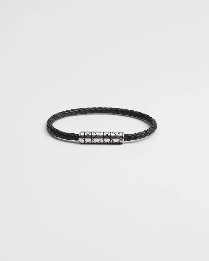 New for Fall 2025, the bracelet has a refined look that subtly conveys House codes. The black woven lambskin cord is enhanced by a silver-finish brass magnetic clasp engraved with the Cannage motif in black lacquer. The bracelet can be coordinated with other Cannage creations in the collection.