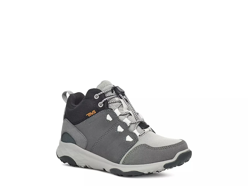Boasting a waterproof construction and gusseted tongue treated with water-repellent coating, this Canyonview Mid hiker boot is ideal for him to splash in puddles. Along with synthetic and mesh, the upper contains suede sourced from tanneries certified by Leather Working Group to promote sustainable practices. 65% recycled nylon and mesh lining and mesh topcover on the footbed provide breathable comfort while rubber outsole pods offer optimal grip to stride confidently on any surface. Plus, this boot is treated with Life Natural, a responsibly sourced peppermint-based antimicrobial to keep his feet fresh.