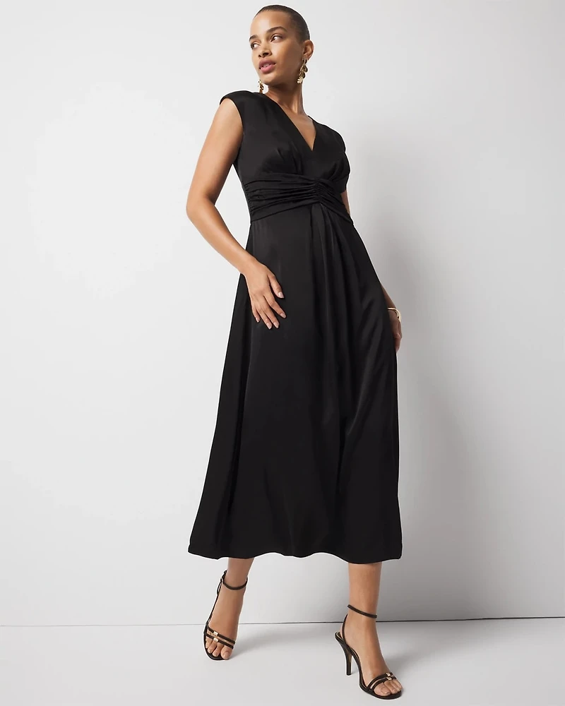 Cap-Sleeve Satin Midi Dress in Bloomington, MN