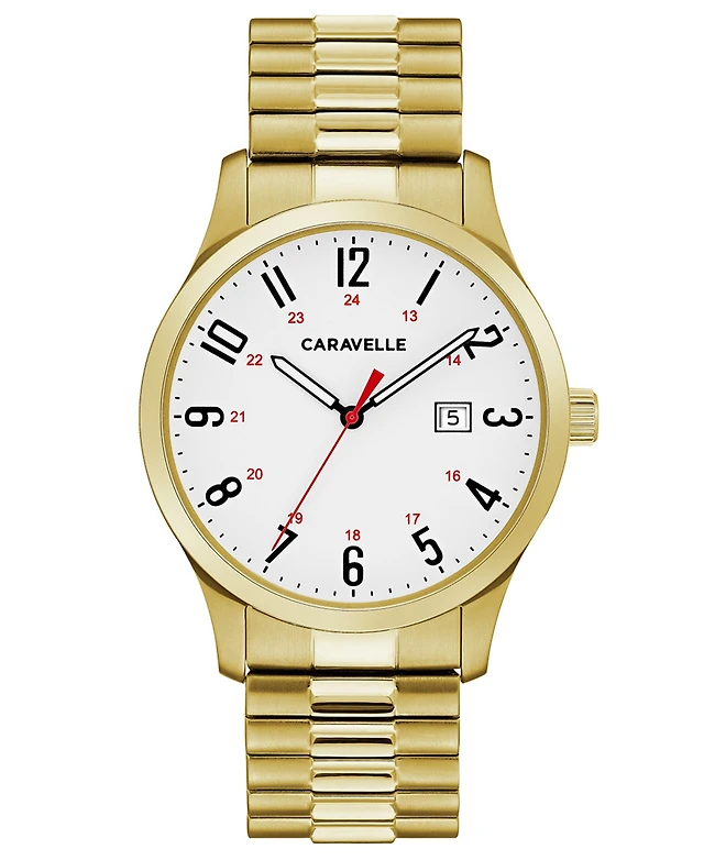 Caravelle designed by Bulova Men's Dress Gold-Tone Stainless Steel Expansion Bracelet Watch 30mm
