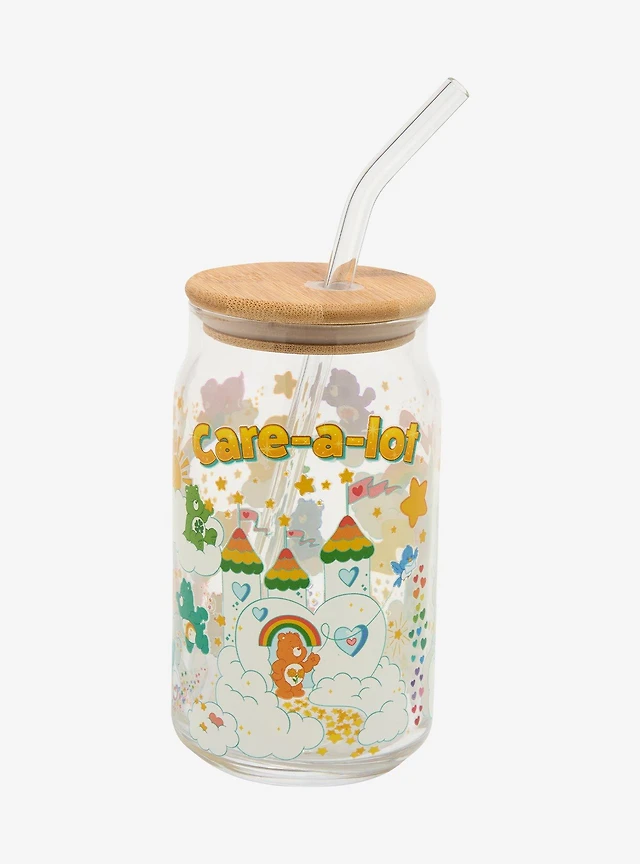 Care Bears x Strawberry Shortcake Iridescent Glass Cup With Straw